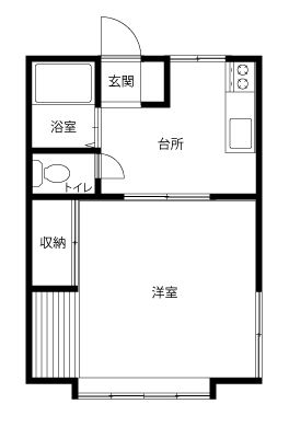 | 間取 | 1K | 専有面積 | 28.92 m2 | 間取り詳細 | 洋室8畳 台所 | 方角 | 南 |